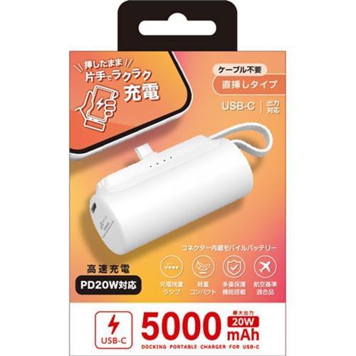 エアージェイ air-j MB-T5000PD-WH USB-C コネクター内蔵 高速充電PD20W対応モバイルバッテリー 5000mAh